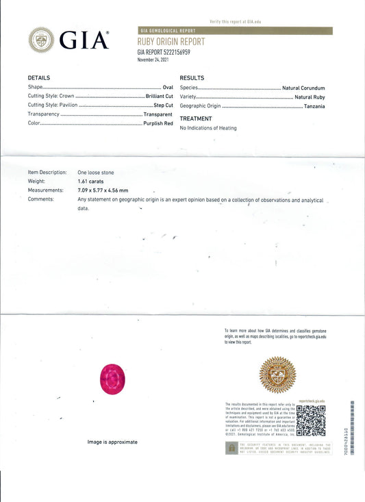 GIA Certified Natural Ruby 1.61CT Unheated from Tanzania